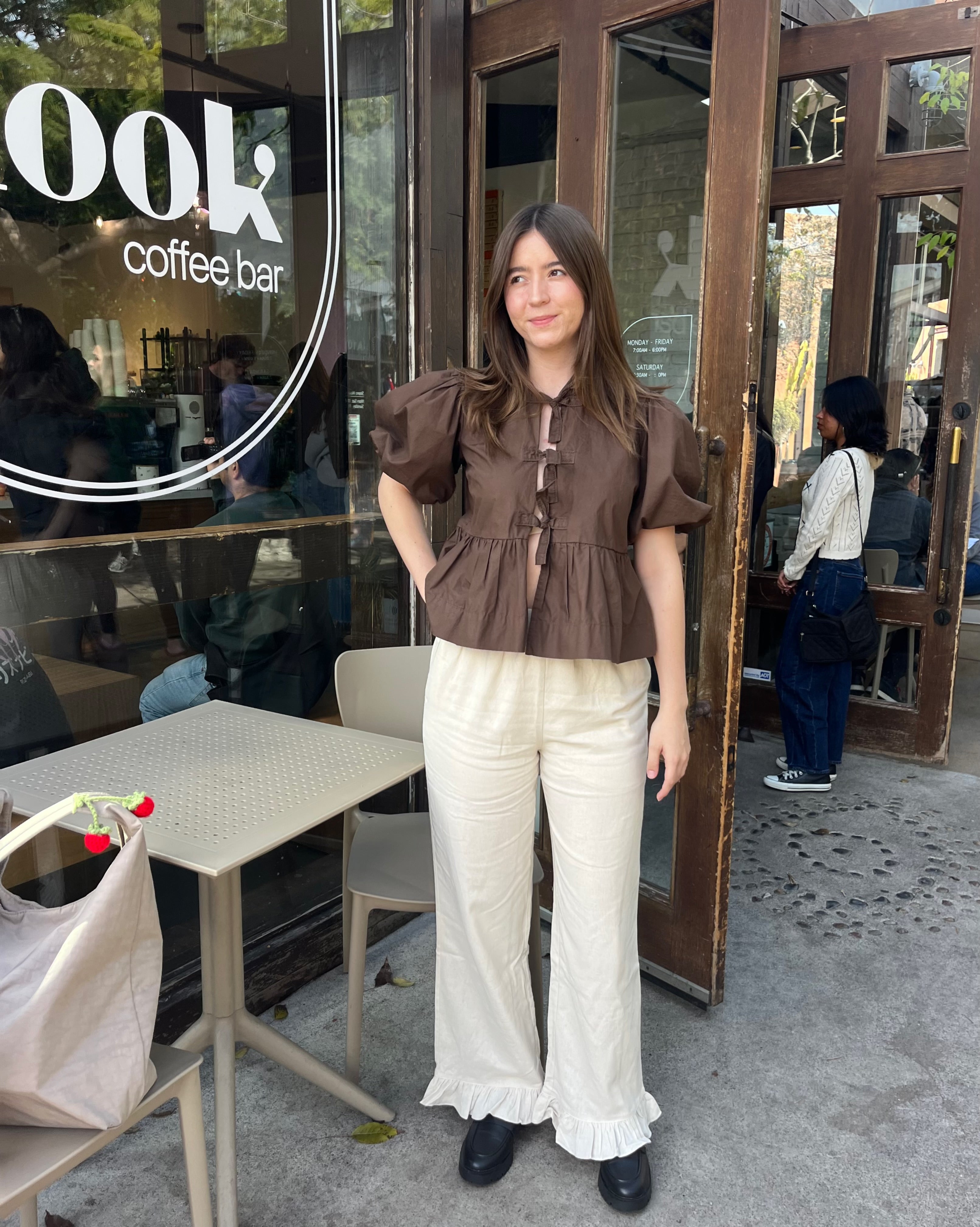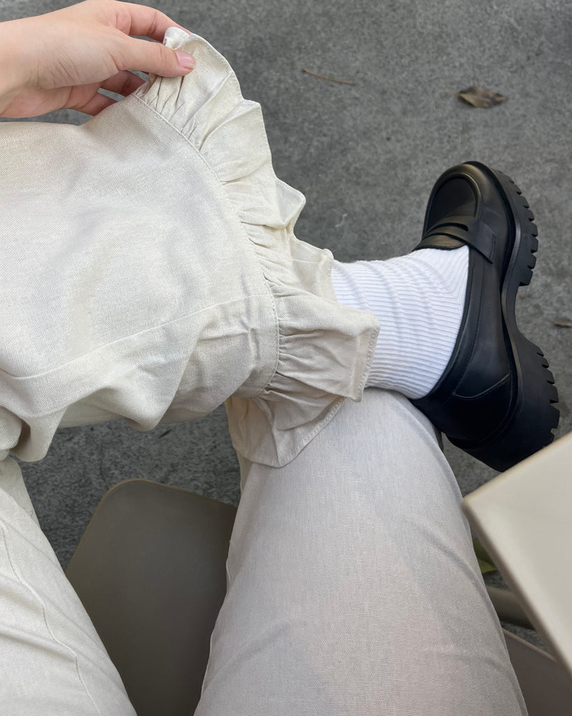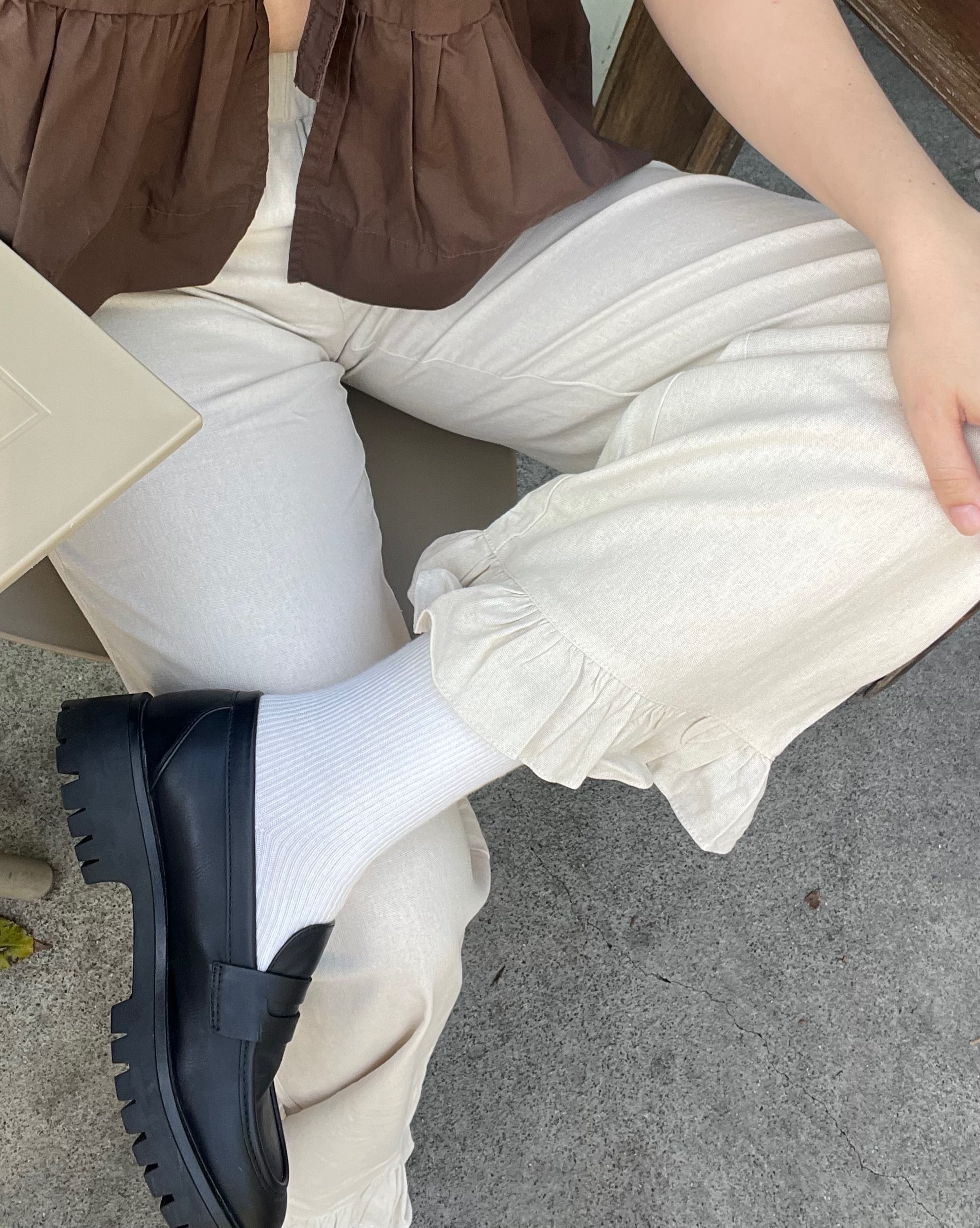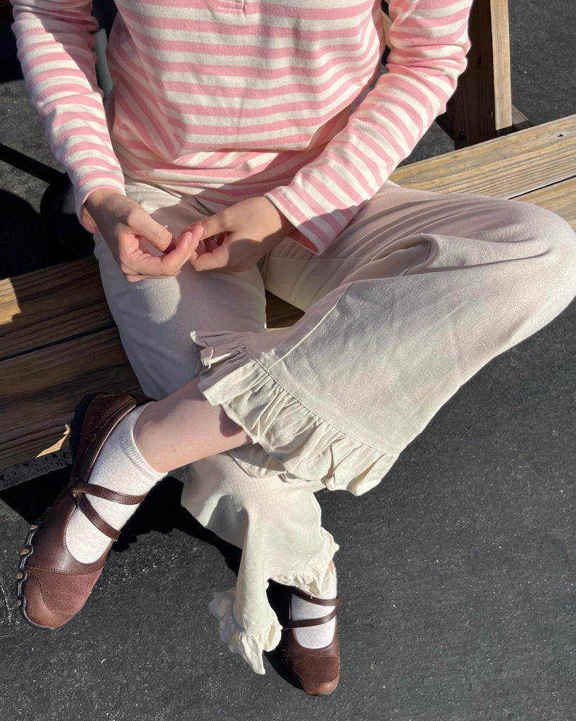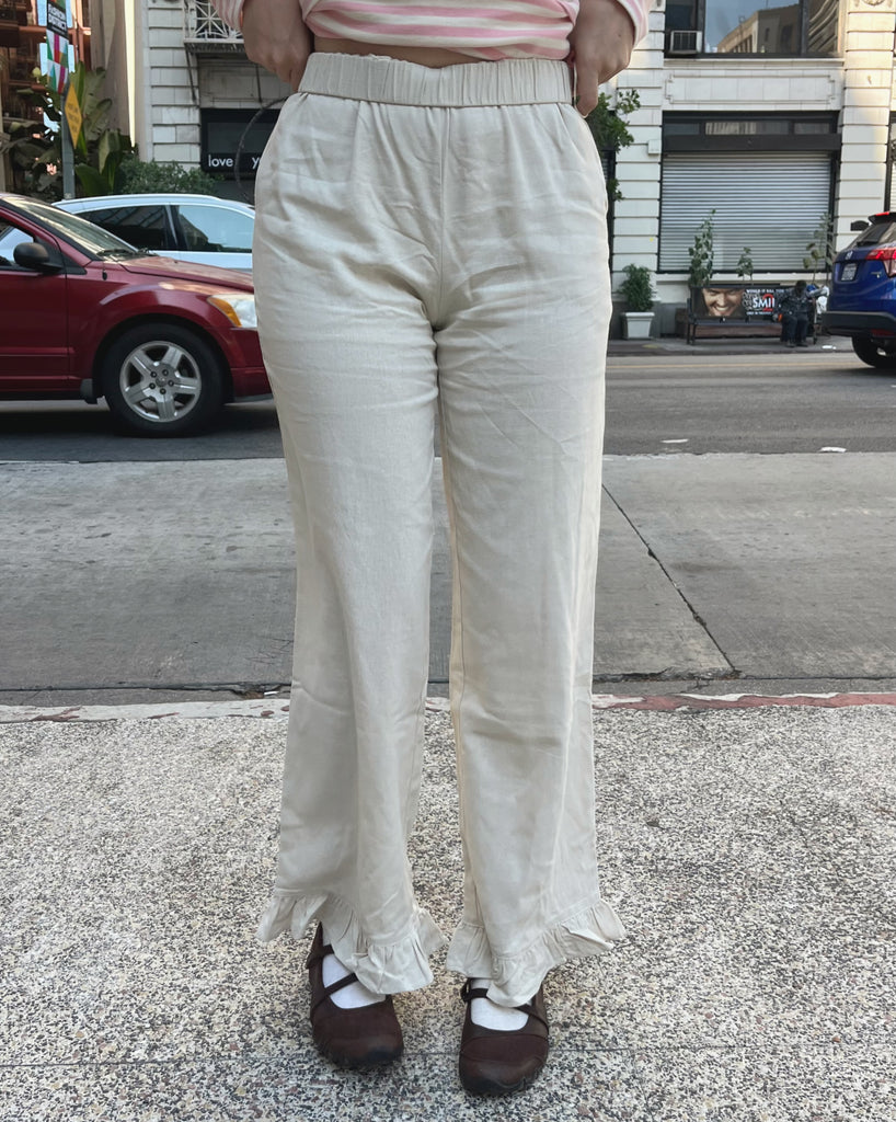 Comfy, casual, and cute! Introducing our Oatmeal pants, featuring pleat details at the bottom.